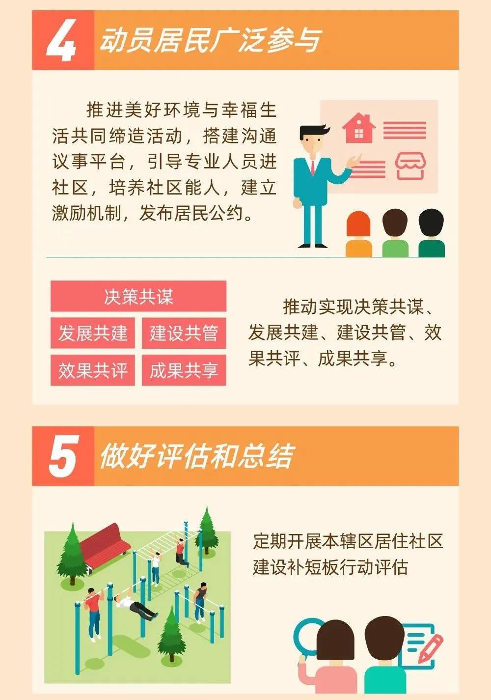 全文如下: 住房和城鄉(xiāng)建設(shè)部等部門關(guān)于開展 城市居住社區(qū)建設(shè)補(bǔ)短板行動(dòng)的意見 各省、自治區(qū)、直轄市住房和城鄉(xiāng)建設(shè)廳(委、管委)、教育廳(委)、通信管理局、公安廳(局)、商務(wù)主管部門、文化和旅游廳(局)、衛(wèi)生健康委、市場監(jiān)管局(廳、委)、體育局、能源局、郵政局、殘聯(lián),國家稅務(wù)總局各省、自治區(qū)、直轄市和計(jì)劃單列市稅務(wù)局,新疆生產(chǎn)建設(shè)兵團(tuán)住房和城鄉(xiāng)建設(shè)局、教育局、公安局、商務(wù)主管部門、文化和旅游局、衛(wèi)生健康委、市場監(jiān)管局、體育局、能源局、郵政局、殘聯(lián): 居住社區(qū)是城市居民生活和城市治理的基本單元,是黨和政府聯(lián)系、服務(wù)人民群眾的“最后一公里”。當(dāng)前,居住社區(qū)存在規(guī)模不合理、設(shè)施不完善、公共活動(dòng)空間不足、物業(yè)管理覆蓋面不高、管理機(jī)制不健全等突出問題和短板,與人民日益增長的美好生活需要還有較大差距。為貫徹落實(shí)習(xí)近平總書記關(guān)于更好為社區(qū)居民提供精準(zhǔn)化、精細(xì)化服務(wù)的重要指示精神,建設(shè)讓人民群眾滿意的完整居住社區(qū),現(xiàn)就開展居住社區(qū)建設(shè)補(bǔ)短板行動(dòng)提出以下意見: 一、總體要求 ?。ㄒ唬?strong style="margin: 0px; padding: 0px; max-width: 100%; box-sizing: border-box; word-wrap: break-word !important; overflow-wrap: break-word !important;">指導(dǎo)思想。以習(xí)近平新時(shí)代中國特色社會(huì)主義思想為指導(dǎo),全面貫徹黨的十九大和十九屆二中、三中、四中全會(huì)精神,堅(jiān)持以人民為中心的發(fā)展思想,堅(jiān)持新發(fā)展理念,以建設(shè)安全健康、設(shè)施完善、管理有序的完整居住社區(qū)為目標(biāo),以完善居住社區(qū)配套設(shè)施為著力點(diǎn),大力開展居住社區(qū)建設(shè)補(bǔ)短板行動(dòng),提升居住社區(qū)建設(shè)質(zhì)量、服務(wù)水平和管理能力,增強(qiáng)人民群眾獲得感、幸福感、安全感。 ?。ǘ?strong style="margin: 0px; padding: 0px; max-width: 100%; box-sizing: border-box; word-wrap: break-word !important; overflow-wrap: break-word !important;">工作目標(biāo)。到2025年,基本補(bǔ)齊既有居住社區(qū)設(shè)施短板,新建居住社區(qū)同步配建各類設(shè)施,城市居住社區(qū)環(huán)境明顯改善,共建共治共享機(jī)制不斷健全,全國地級及以上城市完整居住社區(qū)覆蓋率顯著提升。 二、重點(diǎn)任務(wù) ?。ㄒ唬?strong style="margin: 0px; padding: 0px; max-width: 100%; box-sizing: border-box; word-wrap: break-word !important; overflow-wrap: break-word !important;">合理確定居住社區(qū)規(guī)模。以居民步行5—10分鐘到達(dá)幼兒園、老年服務(wù)站等社區(qū)基本公共服務(wù)設(shè)施為原則,以城市道路網(wǎng)、自然地形地貌和現(xiàn)狀居住小區(qū)等為基礎(chǔ),與社區(qū)居民委員會(huì)管理和服務(wù)范圍相對接,因地制宜合理確定居住社區(qū)規(guī)模,原則上單個(gè)居住社區(qū)以0.5—1.2萬人口規(guī)模為宜。要結(jié)合實(shí)際統(tǒng)籌劃定和調(diào)整居住社區(qū)范圍,明確居住社區(qū)建設(shè)補(bǔ)短板行動(dòng)的實(shí)施單元。 ?。ǘ?strong style="margin: 0px; padding: 0px; max-width: 100%; box-sizing: border-box; word-wrap: break-word !important; overflow-wrap: break-word !important;">落實(shí)完整居住社區(qū)建設(shè)標(biāo)準(zhǔn)。按照《完整居住社區(qū)建設(shè)標(biāo)準(zhǔn)(試行)》(附件),結(jié)合地方實(shí)際,細(xì)化完善居住社區(qū)基本公共服務(wù)設(shè)施、便民商業(yè)服務(wù)設(shè)施、市政配套基礎(chǔ)設(shè)施和公共活動(dòng)空間建設(shè)內(nèi)容和形式,作為開展居住社區(qū)建設(shè)補(bǔ)短板行動(dòng)的主要依據(jù)。 (三)因地制宜補(bǔ)齊既有居住社區(qū)建設(shè)短板。結(jié)合城鎮(zhèn)老舊小區(qū)改造等城市更新改造工作,通過補(bǔ)建、購置、置換、租賃、改造等方式,因地制宜補(bǔ)齊既有居住社區(qū)建設(shè)短板。優(yōu)先實(shí)施排水防澇設(shè)施建設(shè)、雨污水管網(wǎng)混錯(cuò)接改造。充分利用居住社區(qū)內(nèi)空地、荒地及拆除違法建設(shè)騰空土地等配建設(shè)施,增加公共活動(dòng)空間。統(tǒng)籌利用公有住房、社區(qū)居民委員會(huì)辦公用房和社區(qū)綜合服務(wù)設(shè)施、閑置鍋爐房等存量房屋資源,增設(shè)基本公共服務(wù)設(shè)施和便民商業(yè)服務(wù)設(shè)施。要區(qū)分輕重緩急,優(yōu)先在居住社區(qū)內(nèi)配建居民最需要的設(shè)施。推進(jìn)相鄰居住社區(qū)及周邊地區(qū)統(tǒng)籌建設(shè)、聯(lián)動(dòng)改造,加強(qiáng)各類配套設(shè)施和公共活動(dòng)空間共建共享。加強(qiáng)居住社區(qū)無障礙環(huán)境建設(shè)和改造,為居民出行、生活提供便利。 ?。ㄋ模?strong style="margin: 0px; padding: 0px; max-width: 100%; box-sizing: border-box; word-wrap: break-word !important; overflow-wrap: break-word !important;">確保新建住宅項(xiàng)目同步配建設(shè)施。新建住宅項(xiàng)目要按照完整居住社區(qū)建設(shè)標(biāo)準(zhǔn),將基本公共服務(wù)、便民商業(yè)服務(wù)等設(shè)施和公共活動(dòng)空間建設(shè)作為開發(fā)