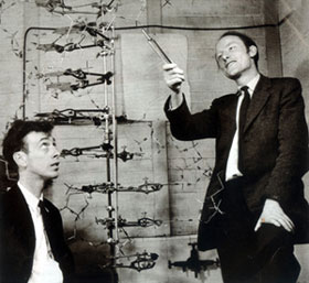 1951年~1953年在英國期間,沃森和克里克合作,應用物理學、化學的新技術(shù)和生物學研究的新成果,用綜合的觀點,把自己的創(chuàng)造性工作同前人的研究成就結(jié)合起來,提出了DNA的雙螺旋結(jié)構(gòu)學說,這個學說不但闡明了DNA的基本結(jié)構(gòu),并且為一個DNA分子如何復制成兩個結(jié)構(gòu)相同DNA分子以及DNA怎樣傳遞生物體的遺傳信息提供了合理的說明,成功地解決了DNA的三維結(jié)構(gòu)問題。