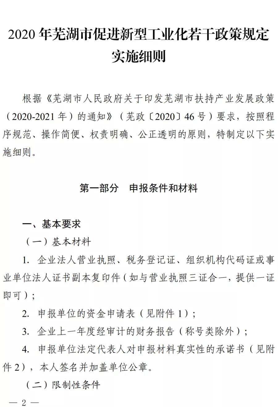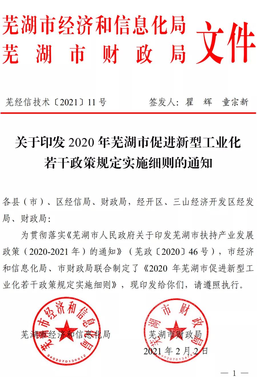蕪湖市2020年促進(jìn)新型工業(yè)化若干政策規(guī)定實(shí)施細(xì)則印發(fā)