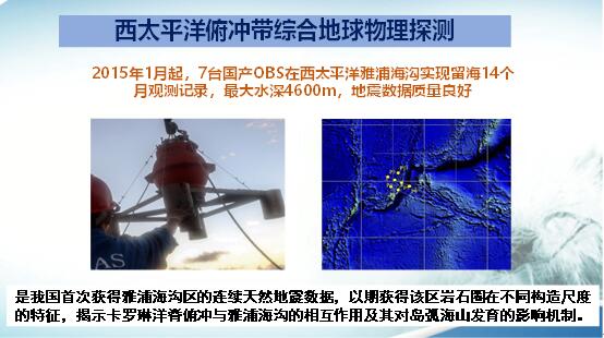 在2015年,我國在西太平洋雅浦海溝投放了7臺海底地震儀,留海觀測時間是14個月,最大的水深是4600米。記錄的地震波形都很好。主要用于揭示巖石圈在不同構造尺度的特征,了解卡羅琳洋脊俯沖與雅浦海溝的相互作用及對島弧海山發(fā)育的影響機制。