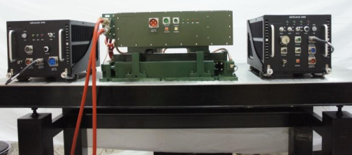 電子所關(guān)于CO2激光器的另一研究方向是射頻(RF)激勵(lì)擴(kuò)散冷卻CO2激光器,射頻激勵(lì)的電源頻率在300kHz—300MHz,具有體積小、重量輕、無(wú)噪音,壽命長(zhǎng)、免于維護(hù),激勵(lì)電壓低、EMC好以及輸出功率可實(shí)現(xiàn)比例放大等優(yōu)點(diǎn)。近年來(lái)電子所做的RF激勵(lì)CO2激光器主要面向工程化應(yīng)用,主要針對(duì)惡劣的環(huán)境、高低溫、沖擊、振動(dòng)等條件制作實(shí)用型激光器。如圖2-4為RF激勵(lì)CO2激光器樣機(jī),可以實(shí)現(xiàn)100W的輸出功率;圖2-5為小型化的RF激勵(lì)CO2激光器,能夠?qū)崿F(xiàn)40W的輸出功率。