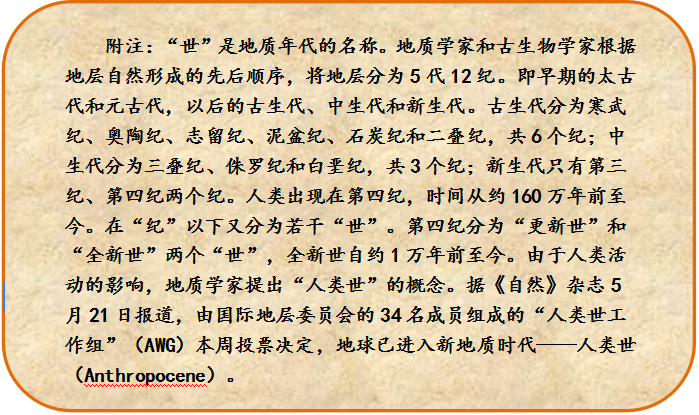 在2000年的一個(gè)國(guó)際會(huì)議上,1995年諾貝爾化學(xué)獎(jiǎng)得主保羅-克魯岑提出,當(dāng)今人類(lèi)活動(dòng)對(duì)自然環(huán)境的影響已經(jīng)超過(guò)了自然狀態(tài)的變化,應(yīng)該定義一個(gè)新的地質(zhì)時(shí)代,叫人類(lèi)世。我國(guó)科學(xué)家劉東生院士參加了此會(huì),回國(guó)后就極力推薦這個(gè)詞。