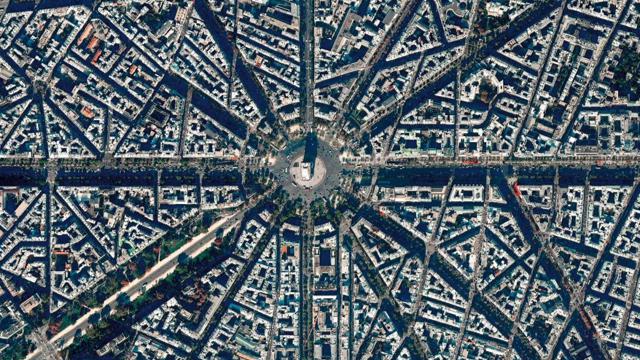 圖2.法國(guó)巴黎,12條大道從凱旋門(mén)廣場(chǎng)輻射延伸出去